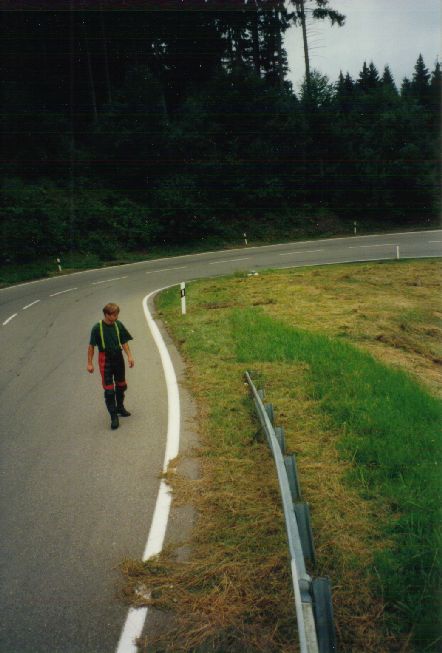 Mein Kumpel sah ich wie eine Puppe in ca. 3 Meter Höhe, die Gliedmassen seltsam verdreht, sich nach vorne überschlagend, in Richtung Kurvenmittelpunkt fliegen ( diesen Anblick werde ich wohl nie vergessen ).